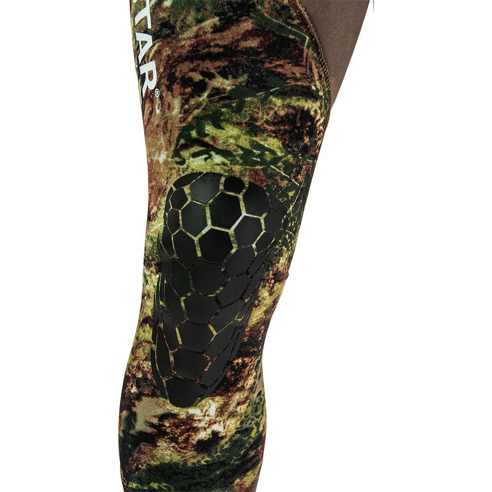 The Abysstar Grouper Evo Wetsuit is a top-quality open-cell suit designed for freediving and spearfishing. Made from premium Korean Jako neoprene, it offers exceptional softness, high stretch, and impressive durability for reliable performance. The open-cell interior provides maximum thermal insulation, while the super-stretch Nylon exterior enhances protection against wear and increases suit longevity. Featuring a realistic 3D camouflage print that mimics Mediterranean seabeds, this wetsuit is elastic, soft, and ergonomically shaped for outstanding comfort and mobility. Includes two pieces: high waist pants and a hooded jacket for versatile fit in any water environment.